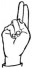 На ћирилици написано МИЛИН ДРАГИЧЕВИЋ састоји се из 15 слова [?]. Исписано ћириличном једноручном азбуком за глувонеме: